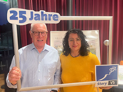25 Jahre story VS – 25 Jahre tolle, spannende Events. Die SVS gratuliert recht herzlich zu diesem Jubiläum. Gemeinsam mit Ihrem Team haben Sie, lieber Herr Prof. Hoyer, mit der Event-Reihe story VS ein einzigartiges und erfolgreiches Format für unsere Region geschaffen, das aus dem Veranstaltungskalender der Stadt Villingen-Schwenningen nicht mehr wegzudenken ist. Mit hochkarätigen Referenten gelingt es Ihnen immer, die Veranstaltungen interessant und kurzweilig zu gestalten. Die Reisereportagen lassen aus dem Alltag entfliehen und wecken die Lust, auf Entdeckungsreise zu gehen. Durch Ihre Heimatverbundenheit sind die Vorträge „Villingen – damals und heute“ sowie „Schwarzwald – Direttissima wandern“ authentisch und auch Einheimische erfahren noch Neues und freuen sich, in einem so schönen Umfeld leben zu dürfen.